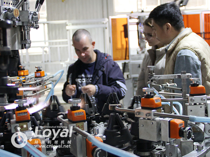 西林瓶生產(chǎn)線包括:自動(dòng)上管、自動(dòng)成型、經(jīng)機(jī)械手轉(zhuǎn)換至前端檢測(cè)線(也叫生產(chǎn)管控)、檢測(cè)線檢測(cè)的項(xiàng)目:1、瓶口內(nèi)外徑 2、瓶身長(zhǎng)短 3、瓶身外徑 4、瓶口邊厚 5、瓶底內(nèi)凹尺寸檢測(cè);經(jīng)檢測(cè)后的合格品再用機(jī)械手夾盤轉(zhuǎn)換至退火爐網(wǎng)帶上,經(jīng)高溫減除應(yīng)力后再降溫,通過氣動(dòng)吸盤將回火后的小瓶轉(zhuǎn)換至后端檢測(cè)線,后端檢測(cè)(也是重檢也叫終檢),經(jīng)后端拍照檢測(cè)項(xiàng)目